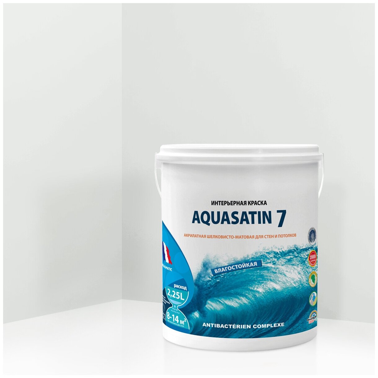 Краска антибактериальная шелковисто-матовая, моющаяся для стен, потолков, кухонь и ванных AQUASATIN 7 , 2.25л, цвет Холодный белый тон OW 107