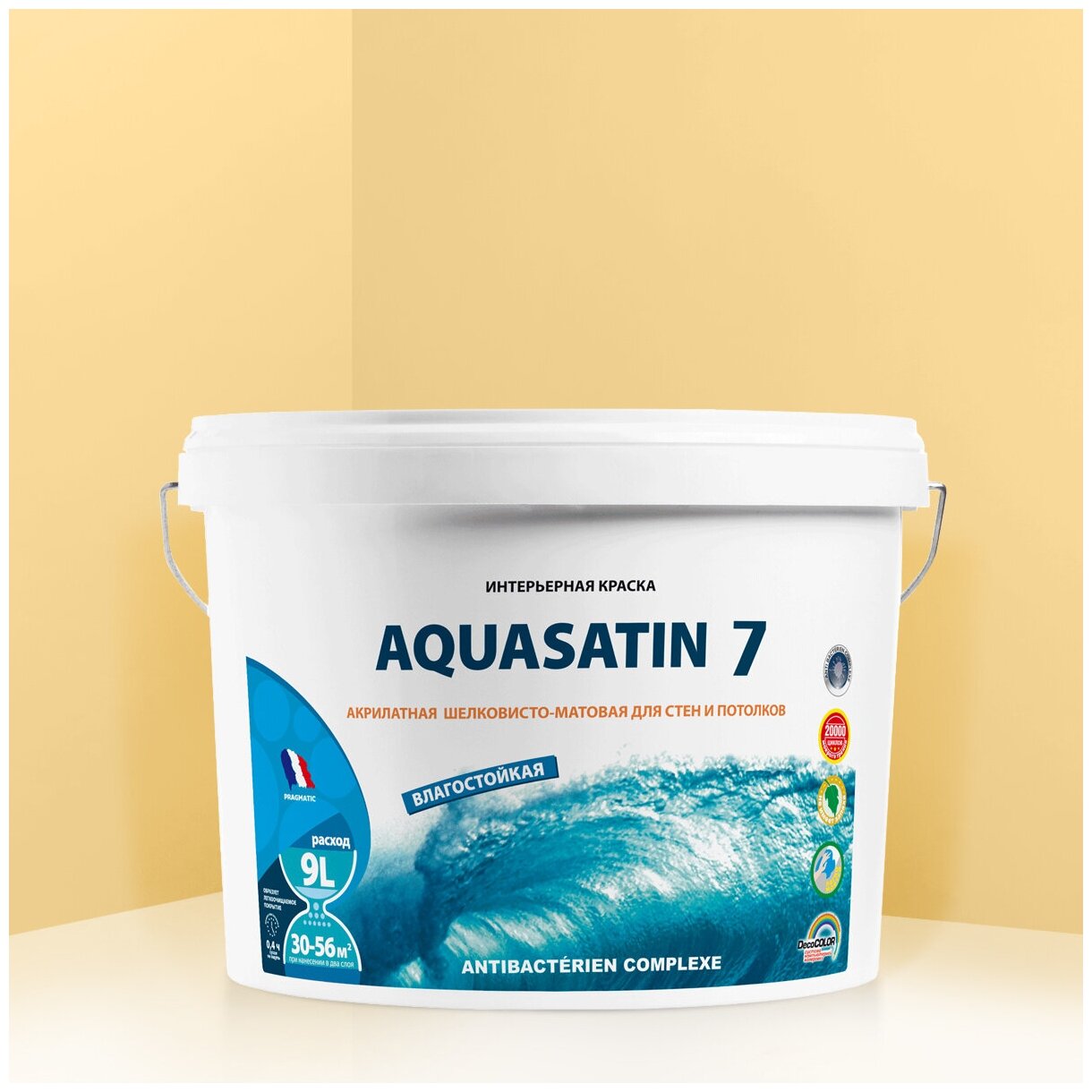Краска антибактериальная шелковисто-матовая, моющаяся для стен, потолков, кухонь и ванных AQUASATIN 7, 2.25л, цвет Светло желтый тон 7954