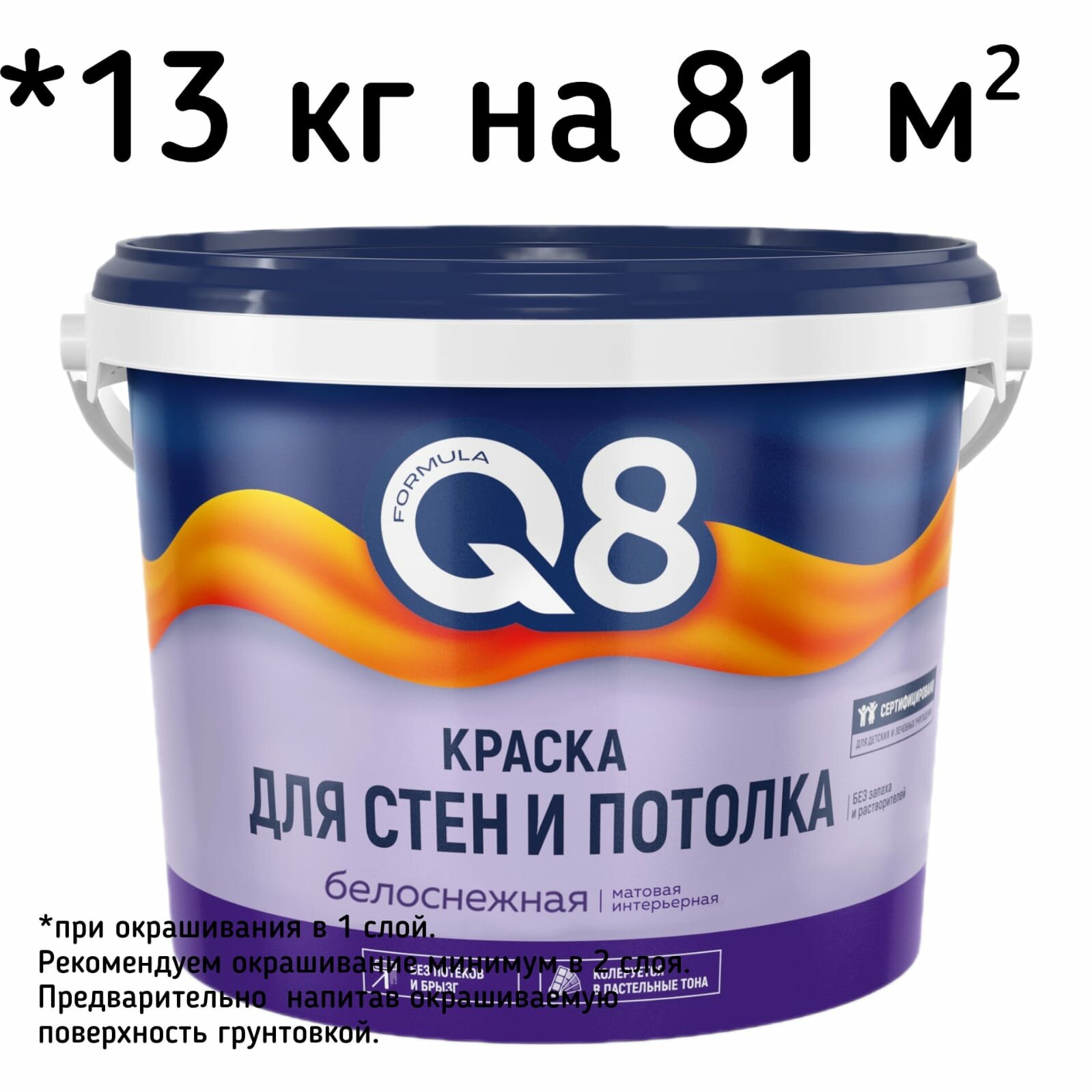 Краска для стен и потолка водно-дисперсионная Formula Q8 , матовая, белая, 13 кг
