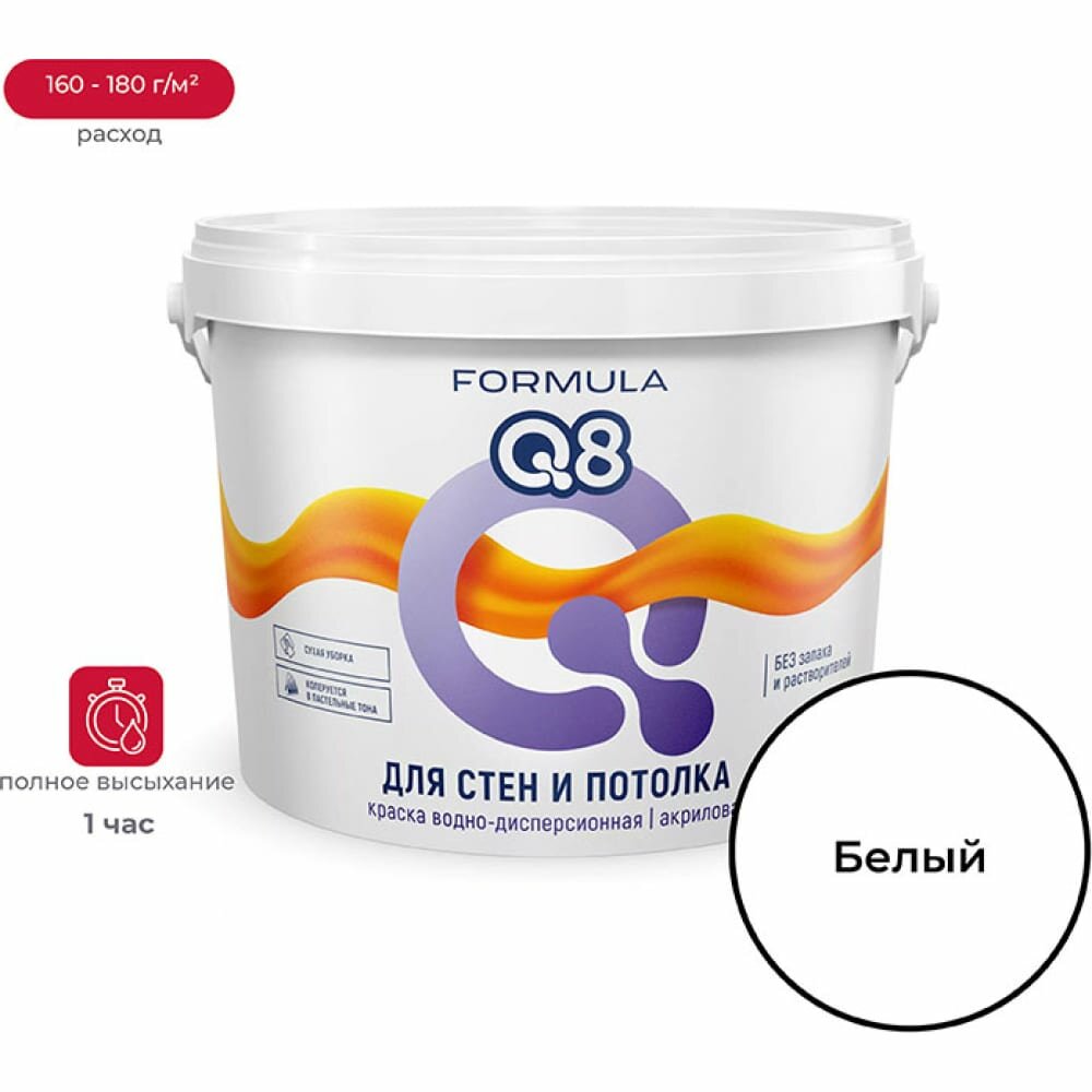 Краска для стен и потолка водно-дисперсионная Formula Q8, матовая, белая, 5 кг