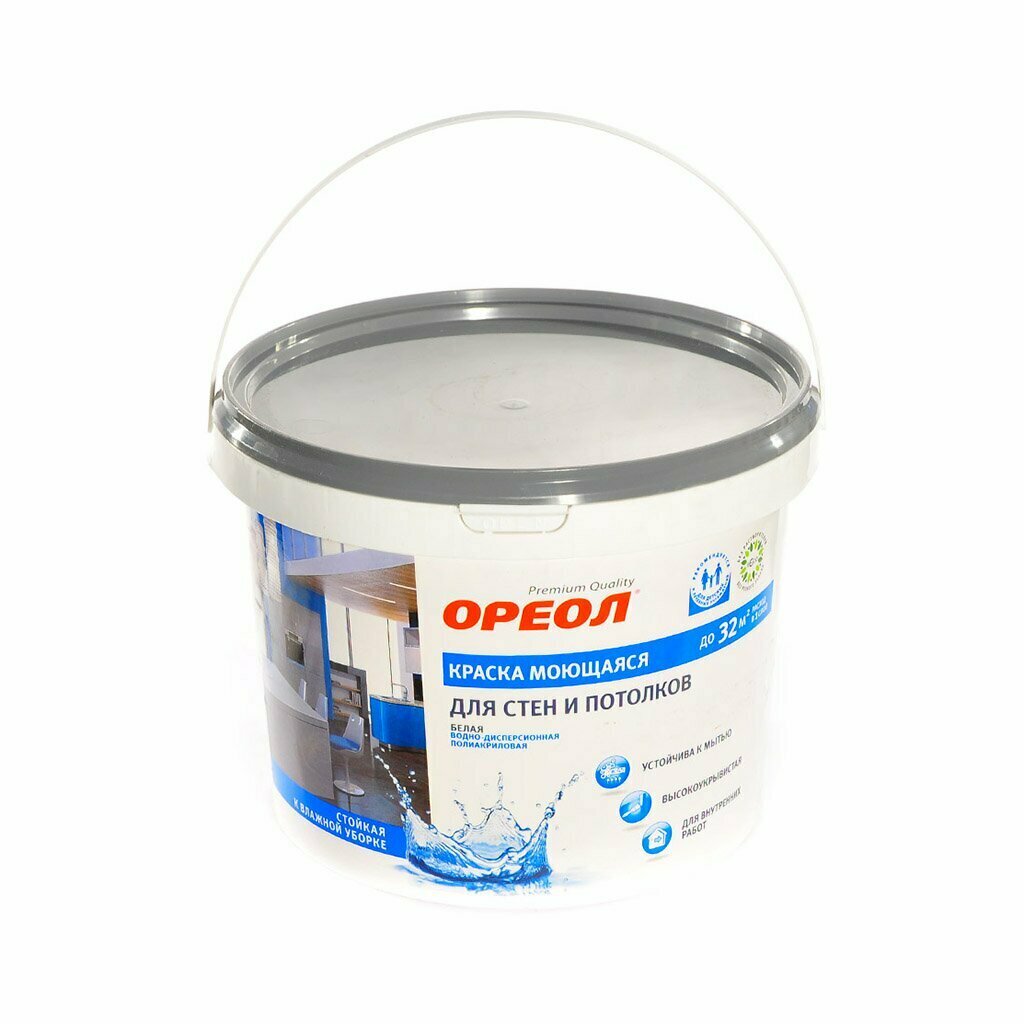 Краска водно-дисперсионная для внутренних работ моющаяся белая 3 кг Ореол 5134210 .