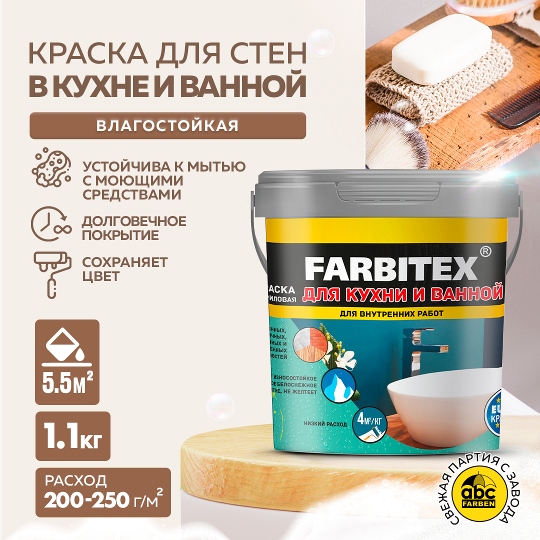 Краска акриловая для кухни и ванной FARBITEX, 1,1 кг