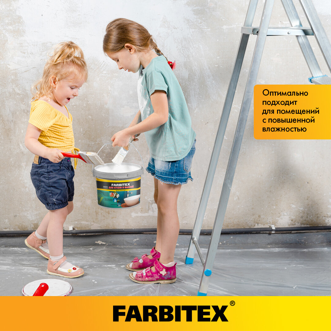 Краска акриловая для кухни и ванной FARBITEX, 6 кг