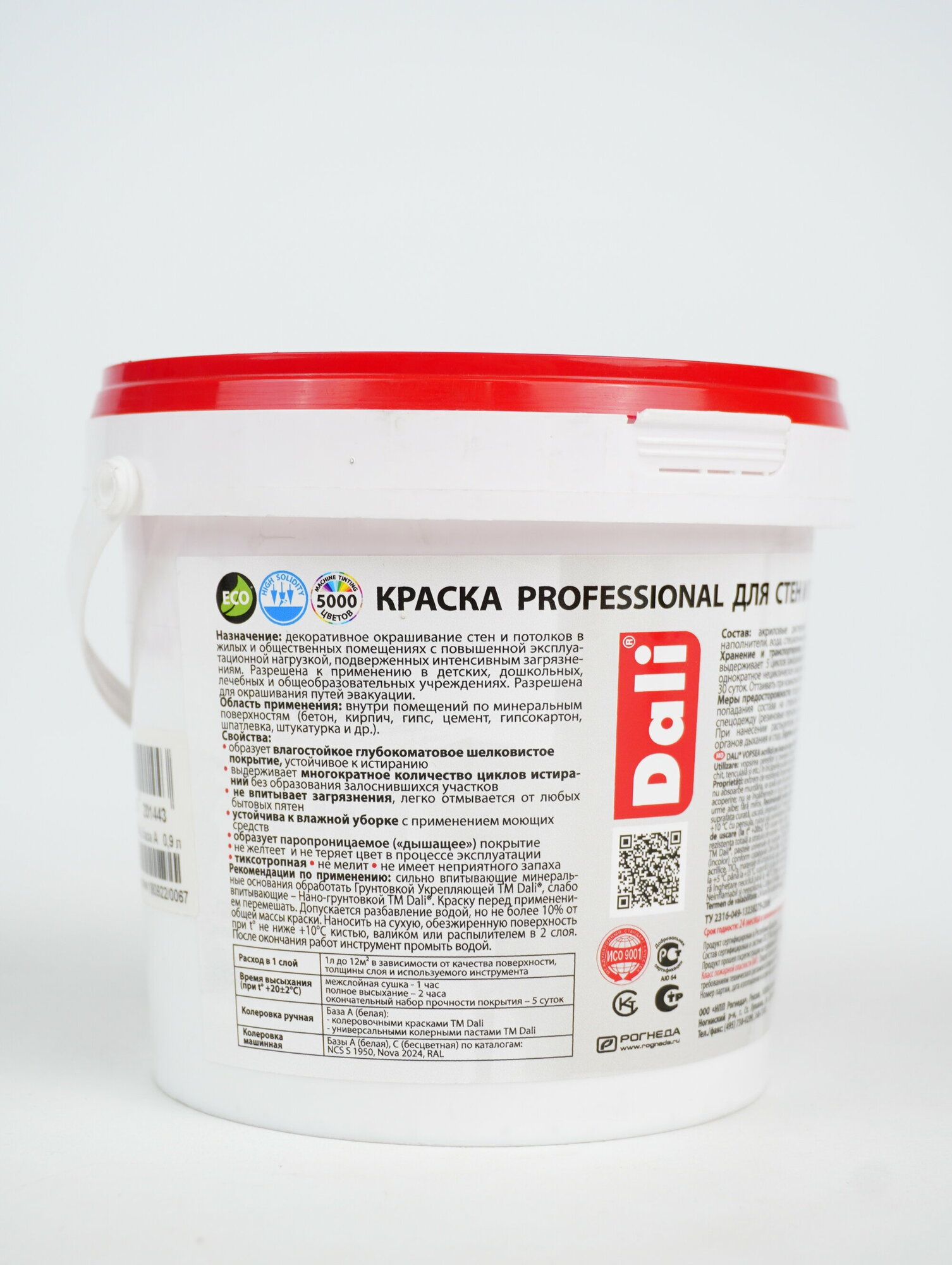 Краска DALI Professional Рогнеда водно-дисперсионные для стен и потолков 0,9л база А моющ. 93219
