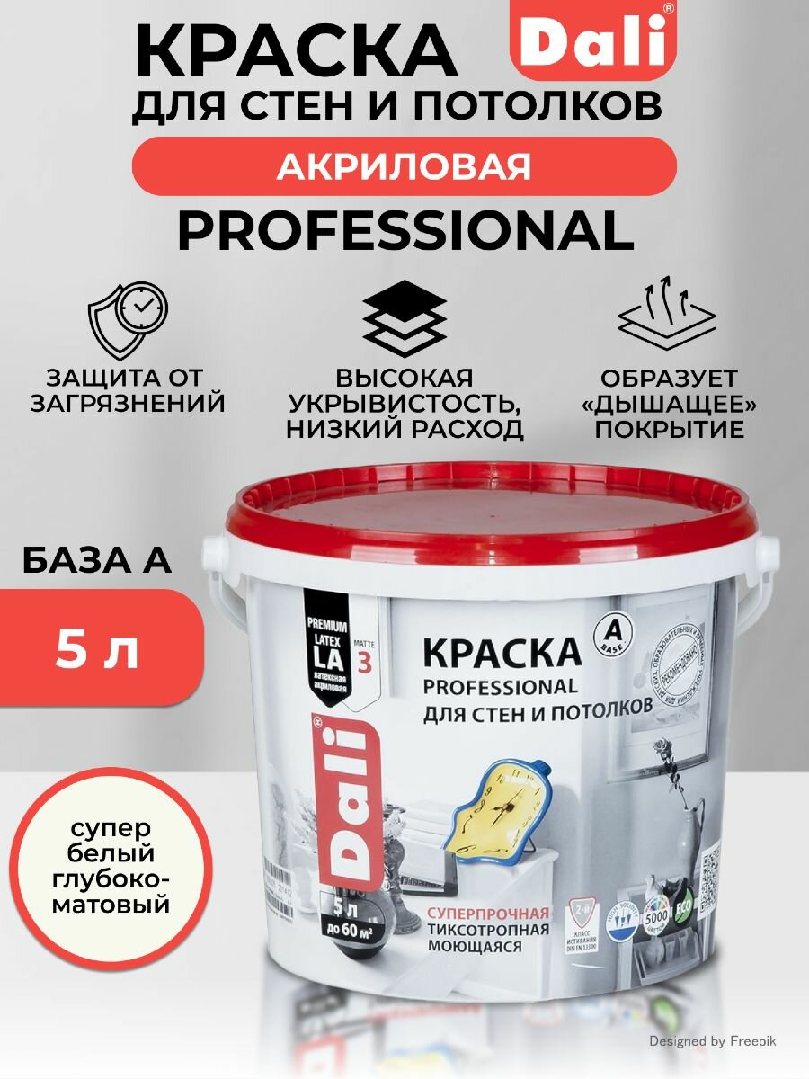 Dali Professional краска для стен и потолков акриловая латексная 5 л A супербелая