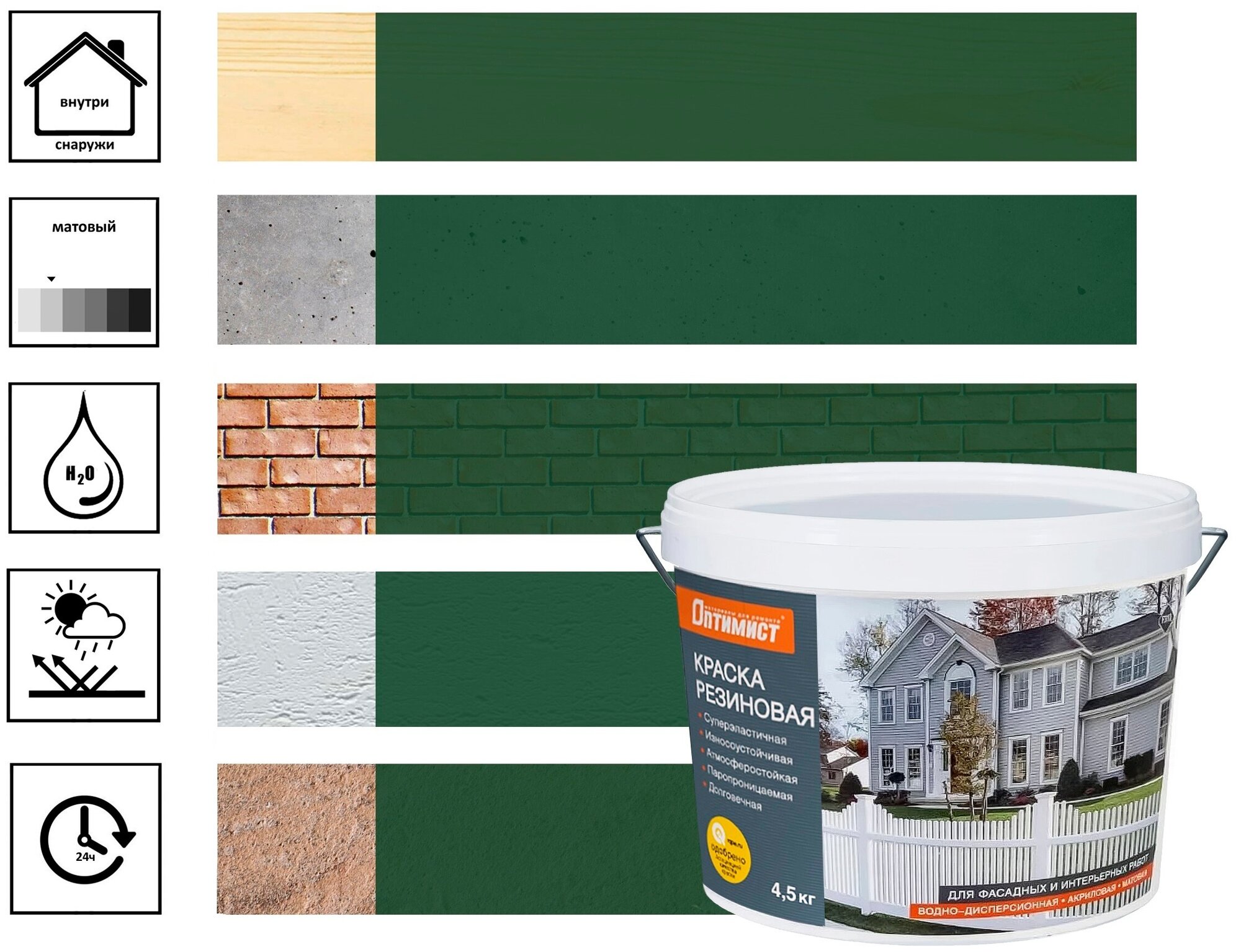 Купить Краска резиновая в/д для нар.и вн.работ акриловая мат. зеленая 4,5 кг
