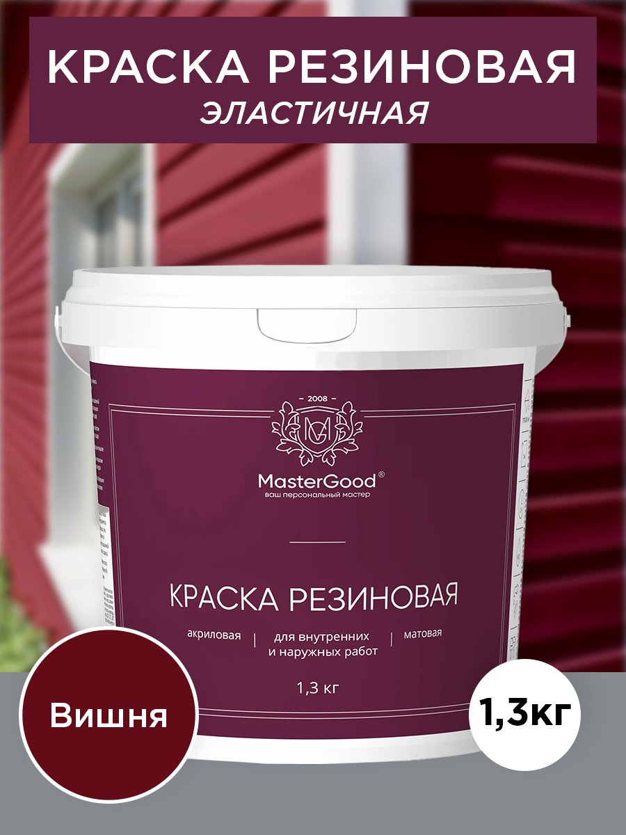 MasterGood Краска резиновая моющаяся акриловая для помещений с повышенной влажностью Вишня (красное вино RAL 3005)(1,3 кг)