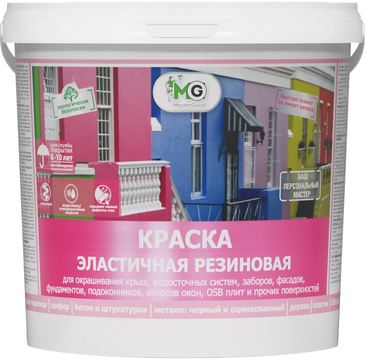 MasterGood Краска резиновая (эластичная) База С (2,4 кг) / Под колеровку / Для фасадов, стен, потолков и помещений с высокой влажностью