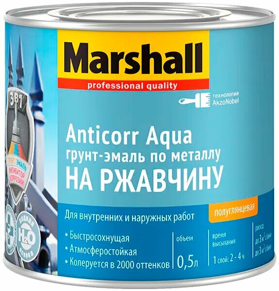 MARSHALL Anticorr aqua база BC грунт-эмаль антикоррозийная акриловая полуглянцевая (0,5л)