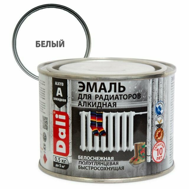 Эмаль для радиаторов Dali, алкидная, полуглянцевая, белая, 0,5 кг