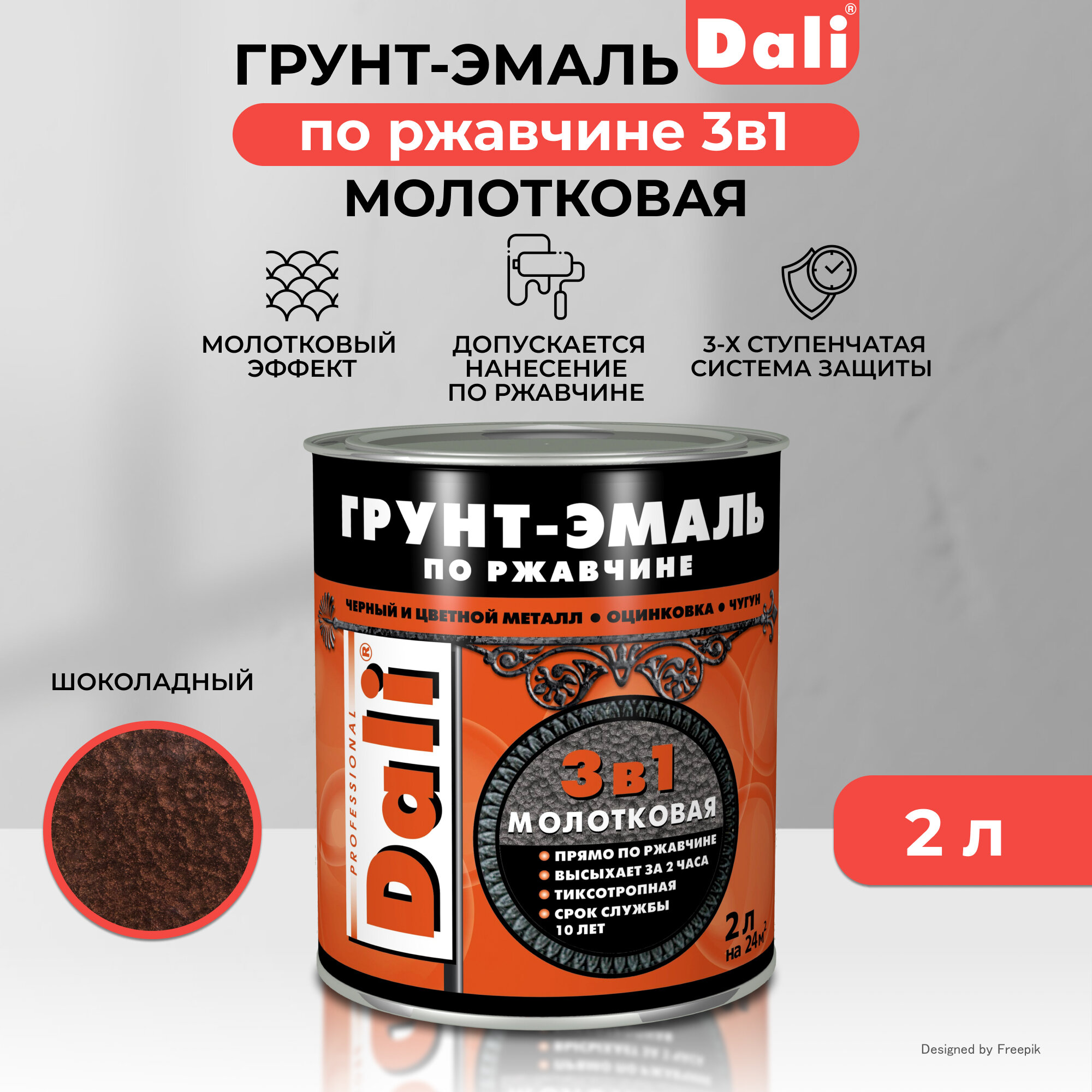 Купить Dali Грунт-Эмаль по ржавчине 3в1 молотковая (Шоколадный, 2 л)