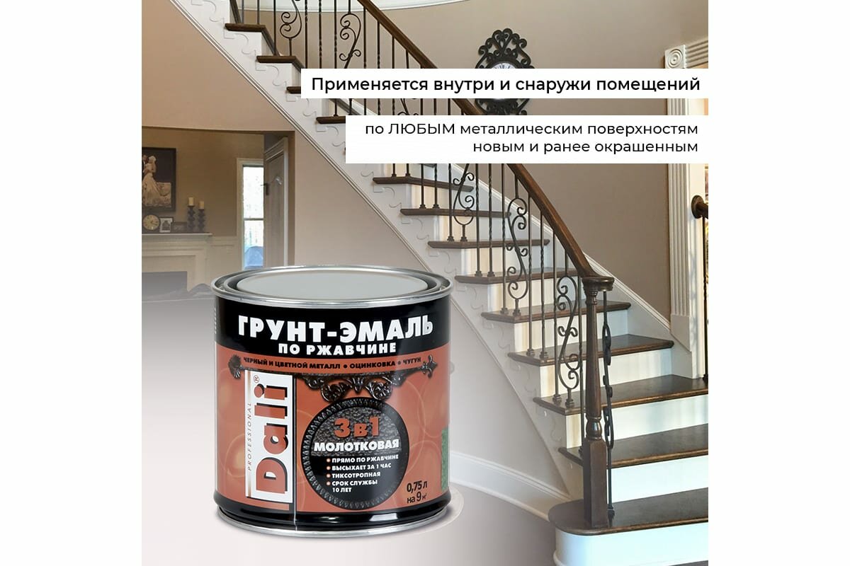 Грунт-эмаль по ржавчине молотковая Dali 0,75 л черный