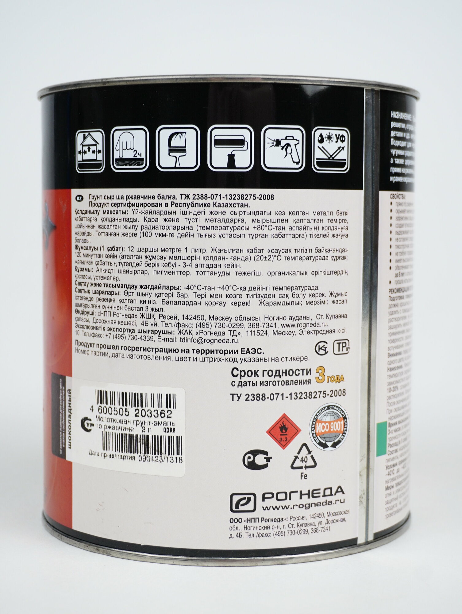 Грунт эмаль 3 в 1 по ржавчине молотковая шоколадная 2л