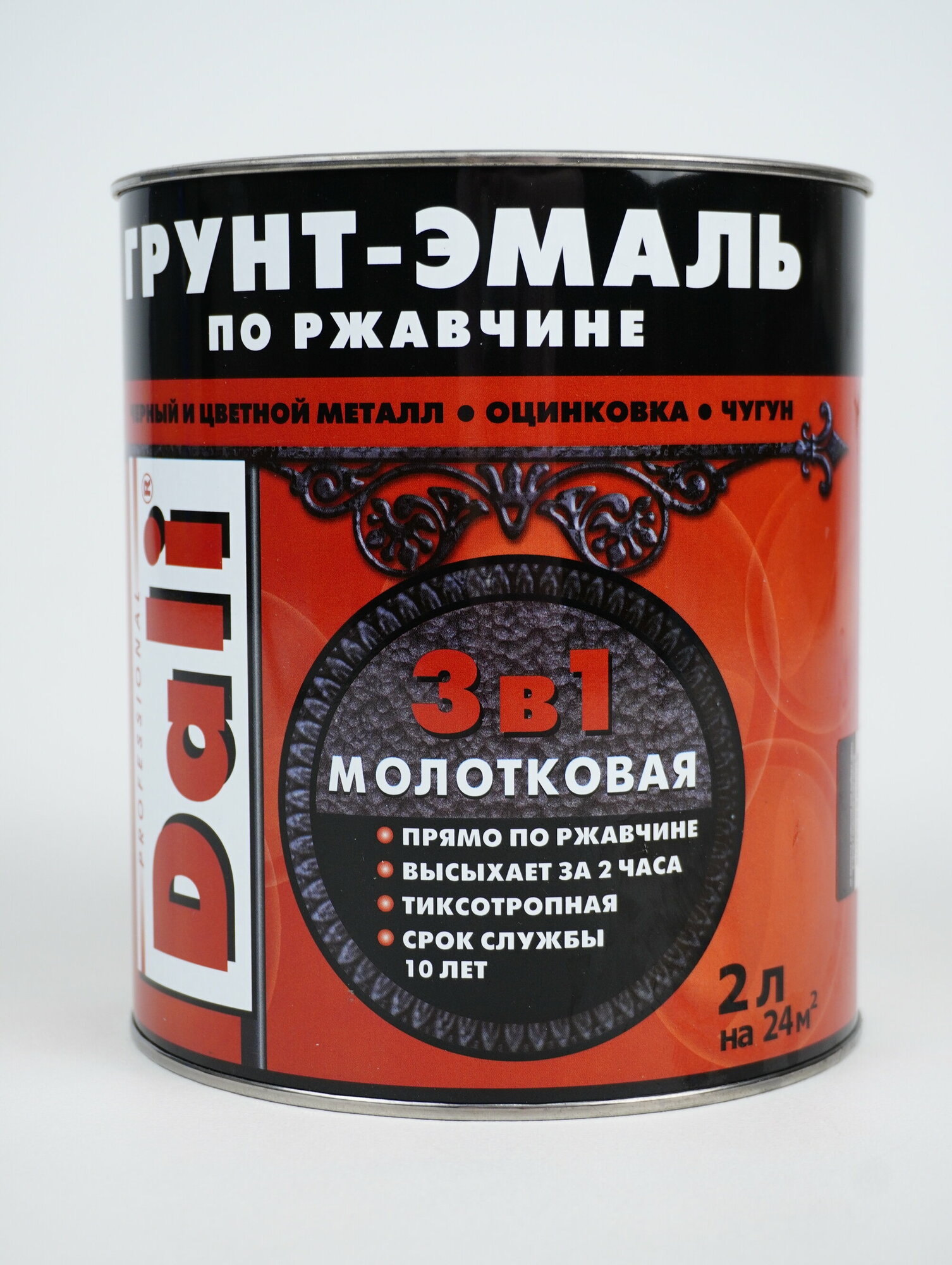 Грунт-эмаль по ржавчине 3в1 Dali черная молотковая глянцевая 2 л