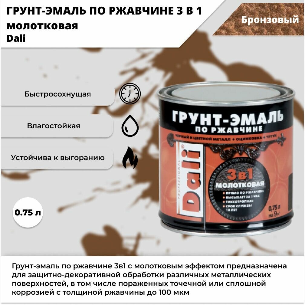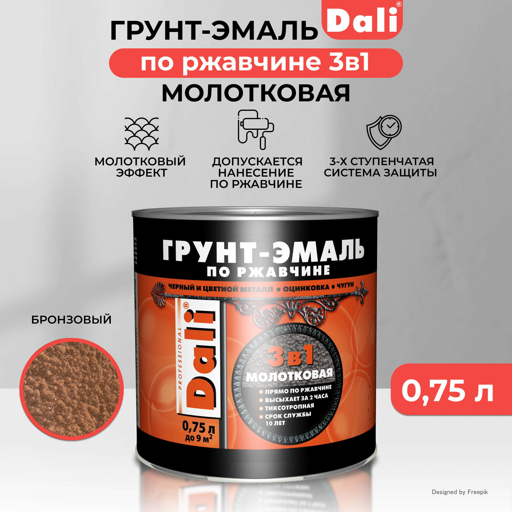 Грунт-Эмаль по Ржавчине 3 в 1 Dali 0.75л Бронзовый с Молотковым Эффектом / Дали Грунт-Эмаль.