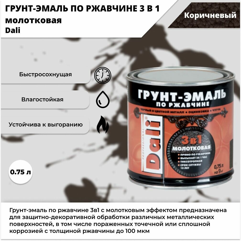 Купить Грунт-эмаль по ржавчине 3в1 молотковая DALI (коричневый / 0.75л.)