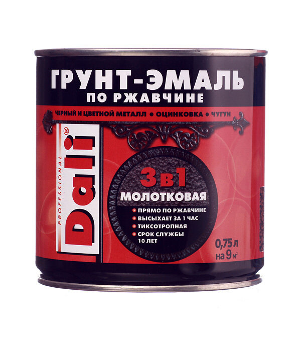 Грунт-эмаль по ржавчине молотковая Dali 0,75 л черный