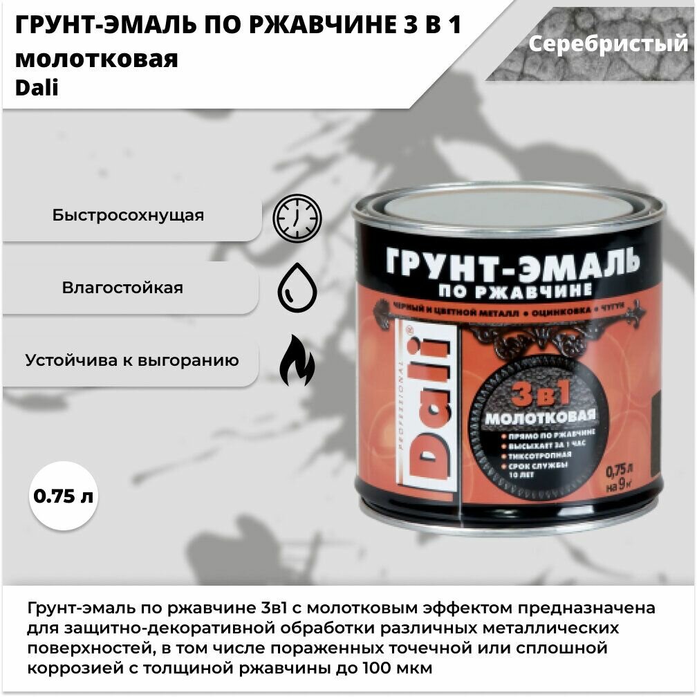 Купить Грунт-эмаль по ржавчине 3в1 молотковая DALI (серебристый / 0.75л.)