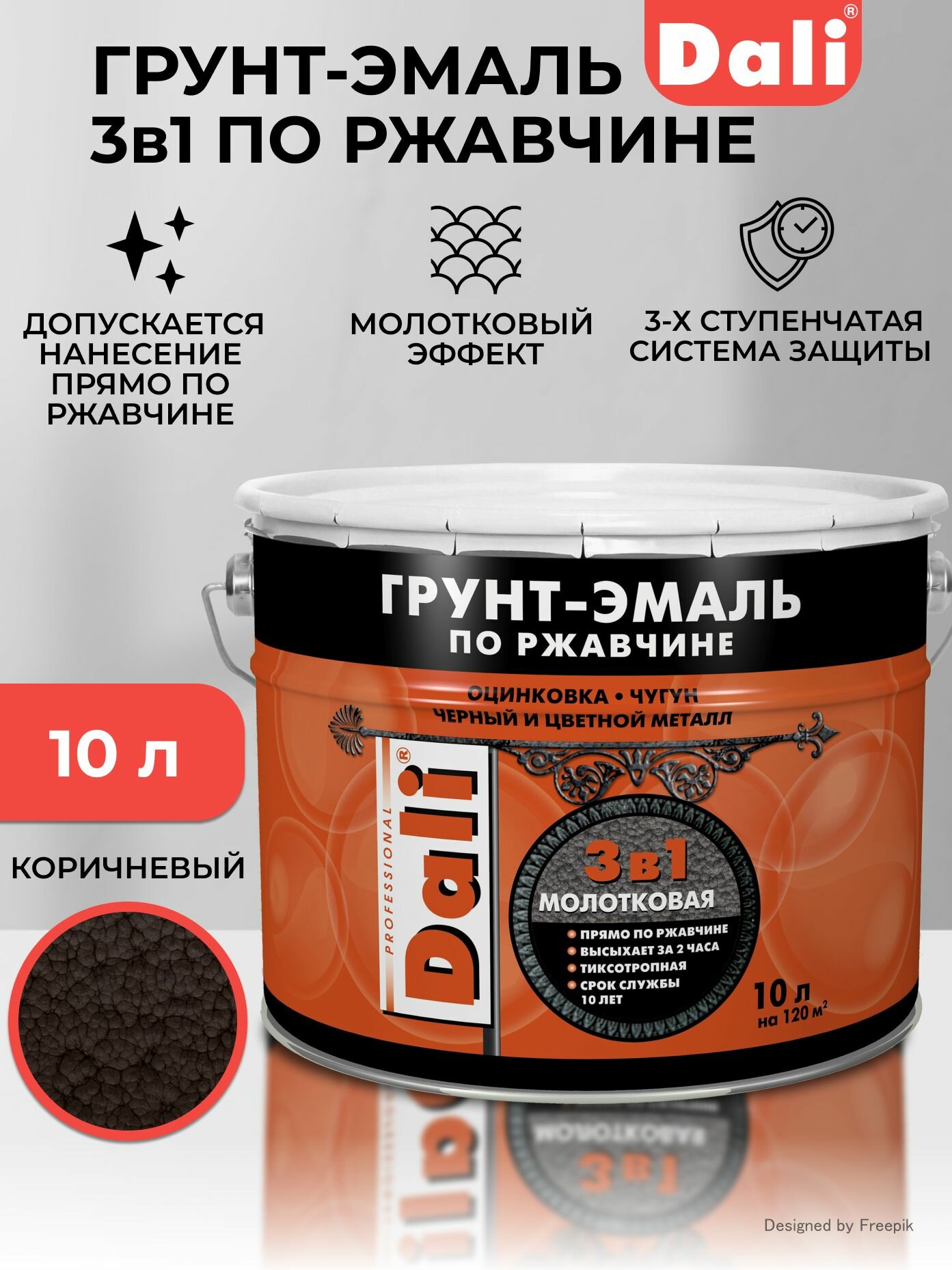 Грунт-Эмаль по Ржавчине 3 в 1 Dali 10л Коричневый с Молотковым Эффектом / Дали Грунт-Эмаль.