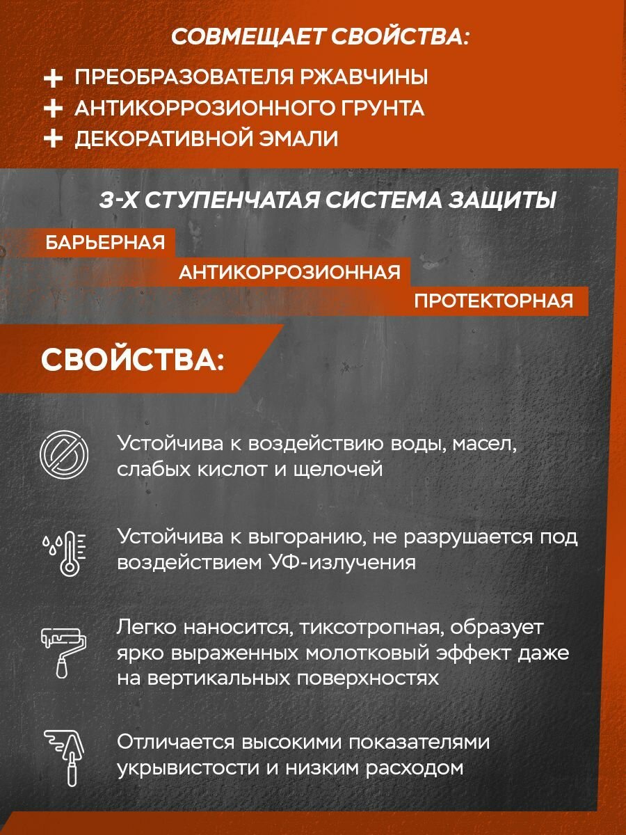 Грунт - эмаль, краска по ржавчине 3 в 1 DALI / Дали молотковая по металлу черный 10л