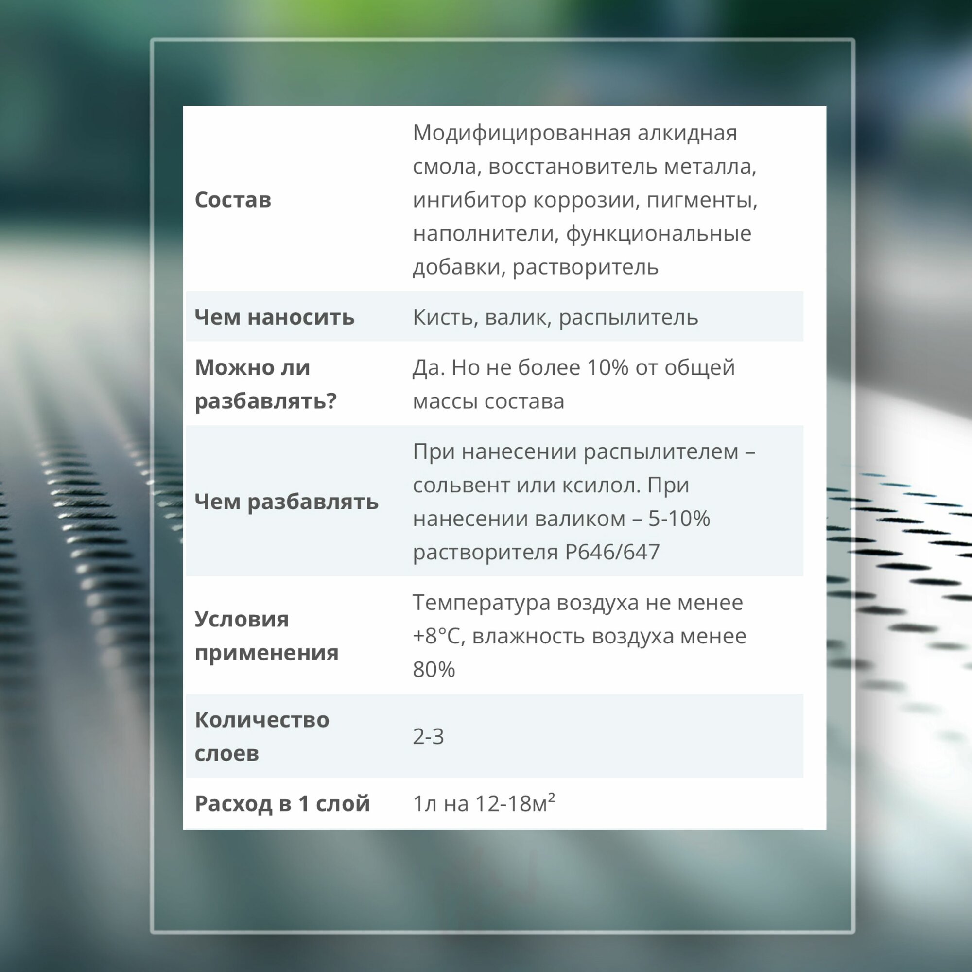 | Отзыв: | Хорошо ложится, старая ржавчина проступает за 2-3 недели. Поверхность предварительно подготовили металлической щеткой. |