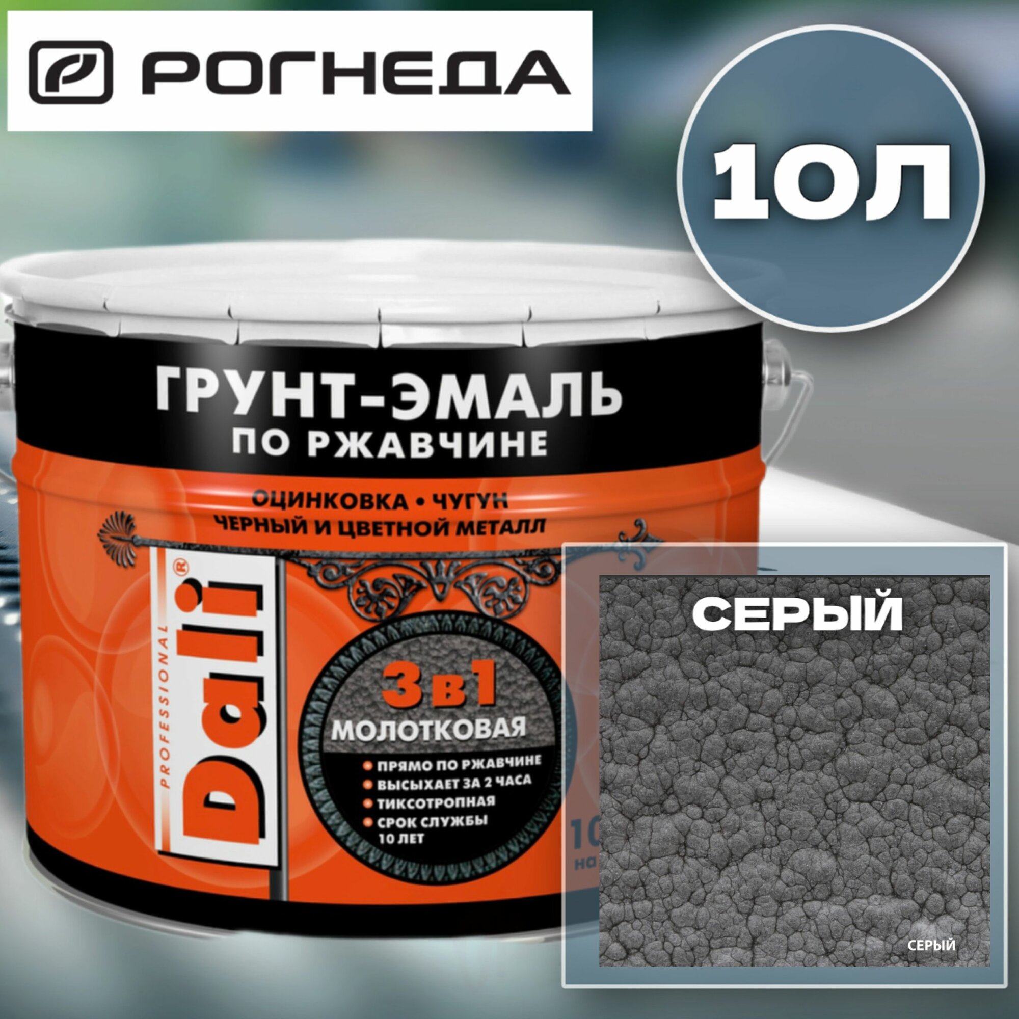 Грунт-Эмаль по Ржавчине 3 в 1 Dali 10л Серый с Молотковым Эффектом / Дали Грунт-Эмаль.