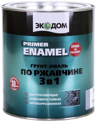Грунт-эмаль по ржавчине 3в1 экодом (серый / 0.9кг)