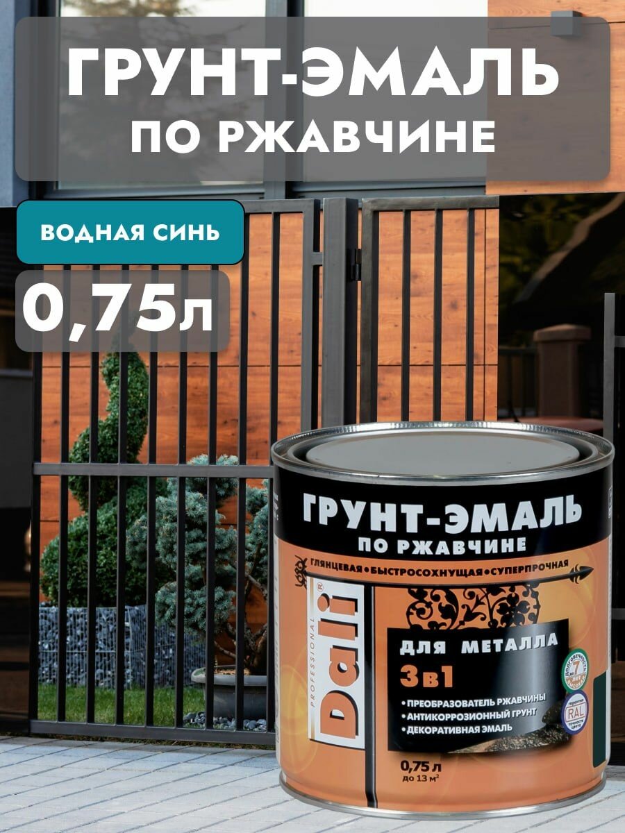 Купить Dali Грунт-Эмаль по ржавчине 3в1 гладкая (Водная синь, RAL 5021, 0,75 л)