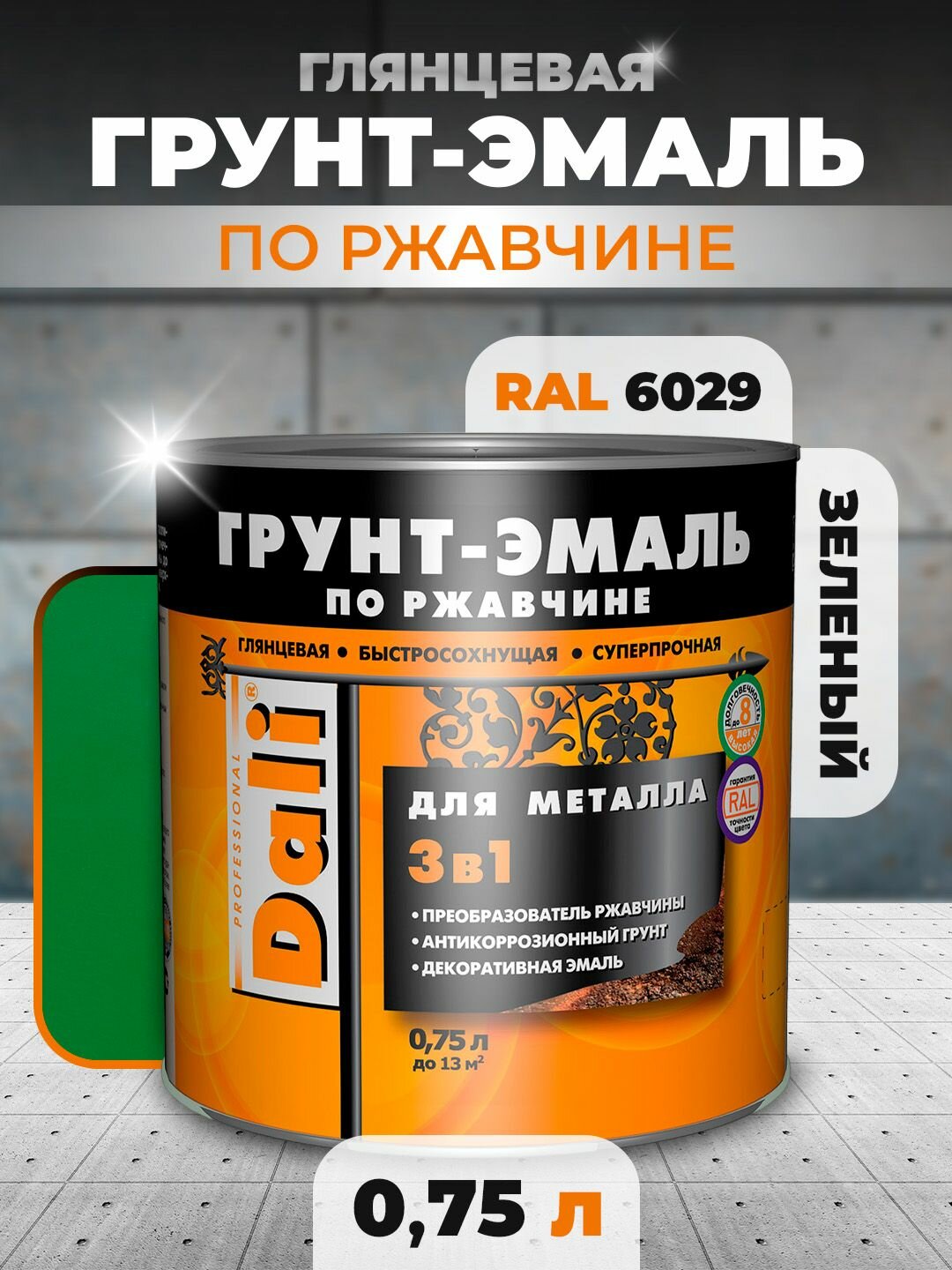 Купить Грунт-эмаль по ржавчине 3в1 гладкая DALI (RAL 6029 - зеленый / 0.75л.)