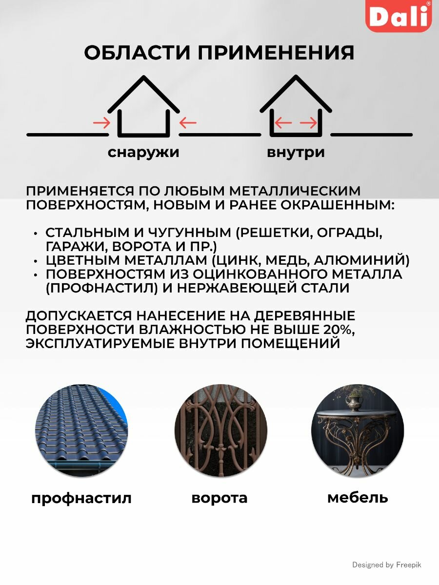 Dali / Дали Грунт-эмаль по ржавчине 3 в 1 гладкая алкидная RAL 9006 Серебристый алюминий 10л