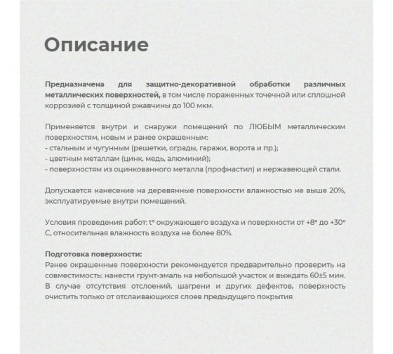 Из минусов - при окраске кистью какой-то огромный расход, у меня вышел в 2 раза выше чем максимальный из инструкции. Там куда должно было хватить 1,5 банки, не хватило двух. Рекомендовал бы купить преобразователь ржавчины отдельно и обработать после минимальной механической очисткой перед окраской, благо он стоит копейки, тогда и расход будет меньше и держаться будет лучше |