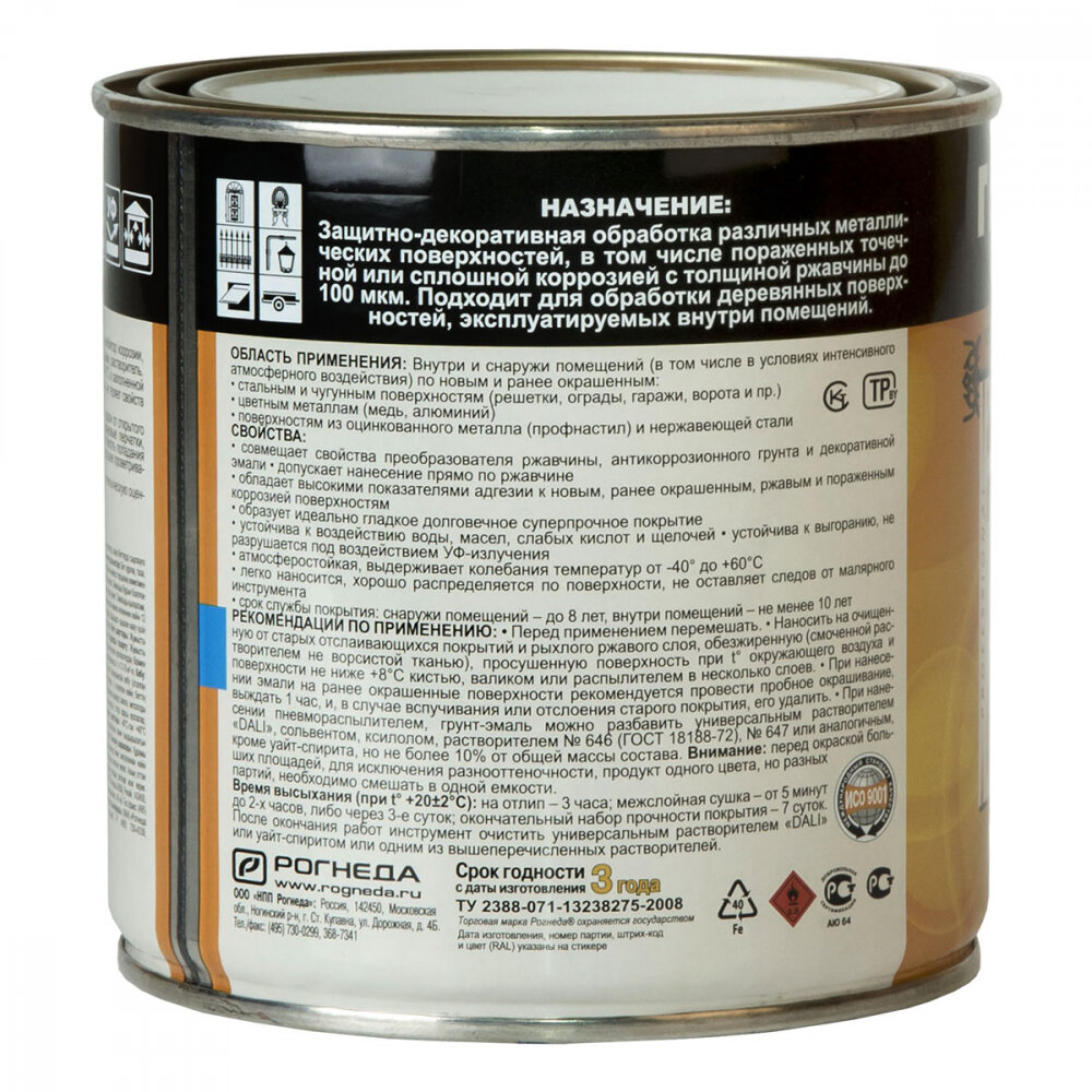 Из минусов - при окраске кистью какой-то огромный расход, у меня вышел в 2 раза выше чем максимальный из инструкции. Там куда должно было хватить 1,5 банки, не хватило двух. Рекомендовал бы купить преобразователь ржавчины отдельно и обработать после минимальной механической очисткой перед окраской, благо он стоит копейки, тогда и расход будет меньше и держаться будет лучше |