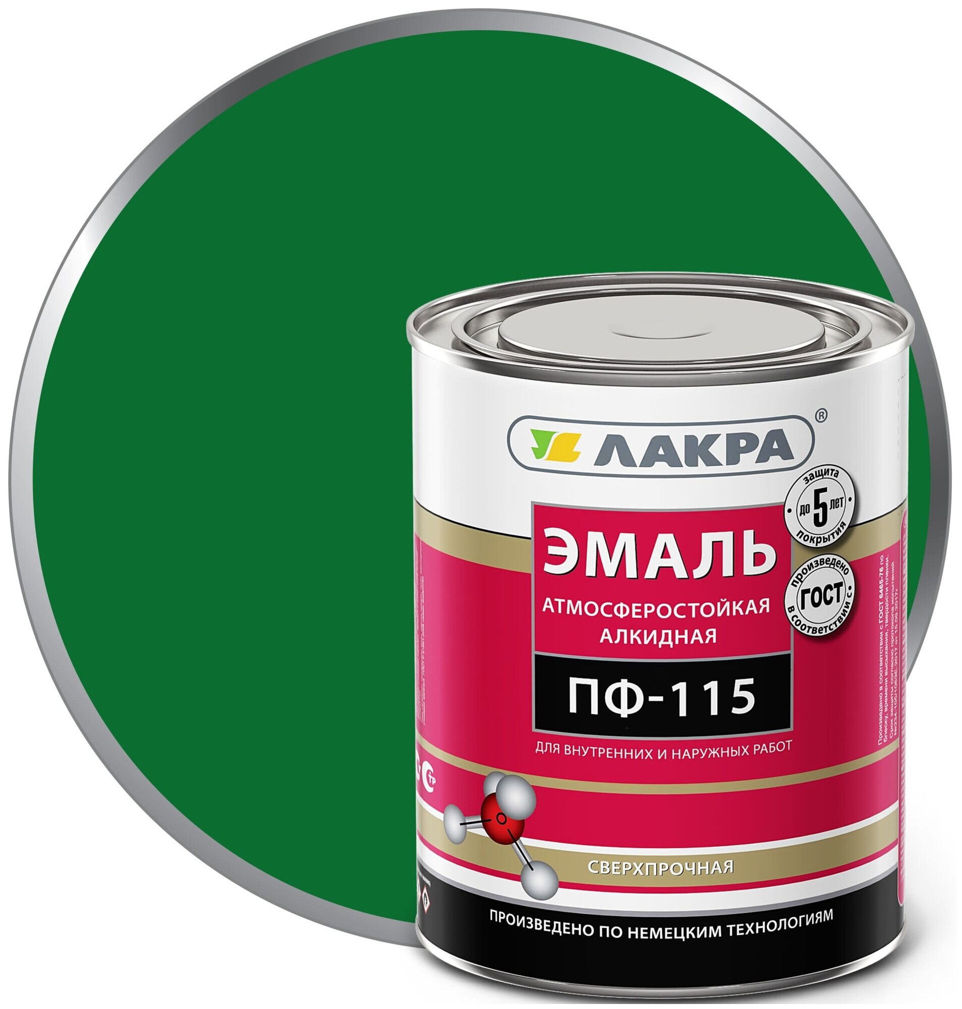 Эмаль ПФ-115 универсальная Лакра глянцевая, зеленая, 2,8кг