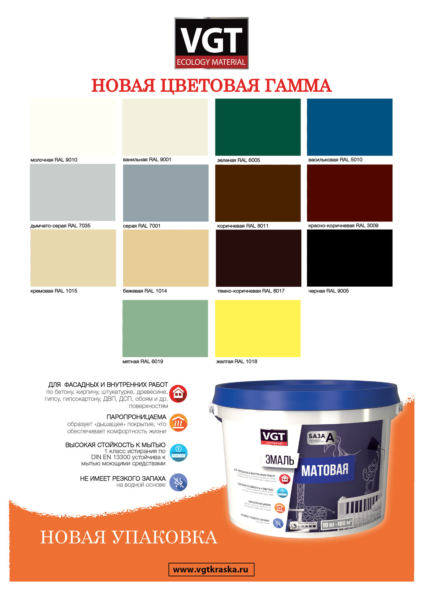 СохранитьЭмаль универсальная ВД-АК-1179 VGT цветная матовая (1кг) ванильный RAL 9001 интересное: