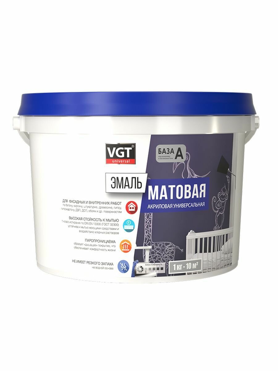 Эмаль акриловая VGT матовая универсальная база A 1,5 кг