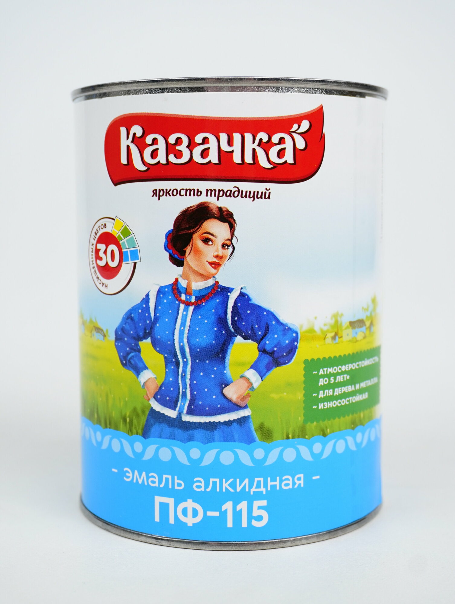 Эмаль ПФ-115 алкидная Казачка, глянцевая, 0,9 кг, голубая