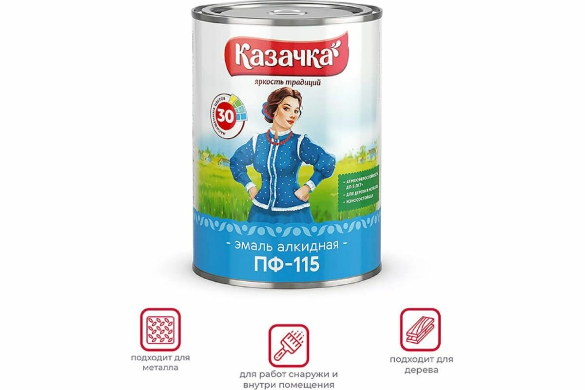 Эмаль ПФ-115 алкидная Казачка, глянцевая, 0,9 кг, синяя, 1шт