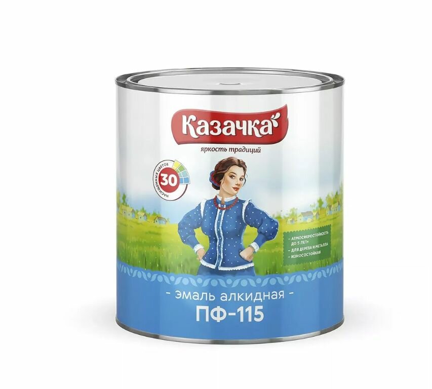 Эмаль ПФ-115 алкидная Казачка, глянцевая, 0,9 кг, синяя, 1шт