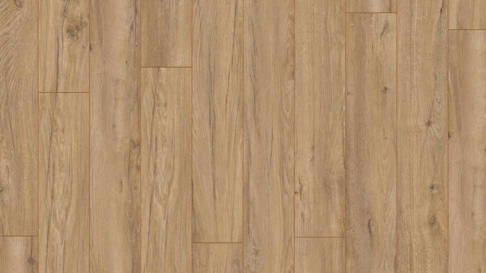 Выбрал вариант Kronotex Aqua Robusto. Интересный чёткий рисунок, что важно. Почитал отзывы, отмечают, что не выцветает со временем. Могу отметить, что он хорошо укладывается. На вид выглядит прочно. Но через месяц пользования могу сказать, что не продавливается под ногами и шкафами. Ногам комфортно ходить по ламинату |