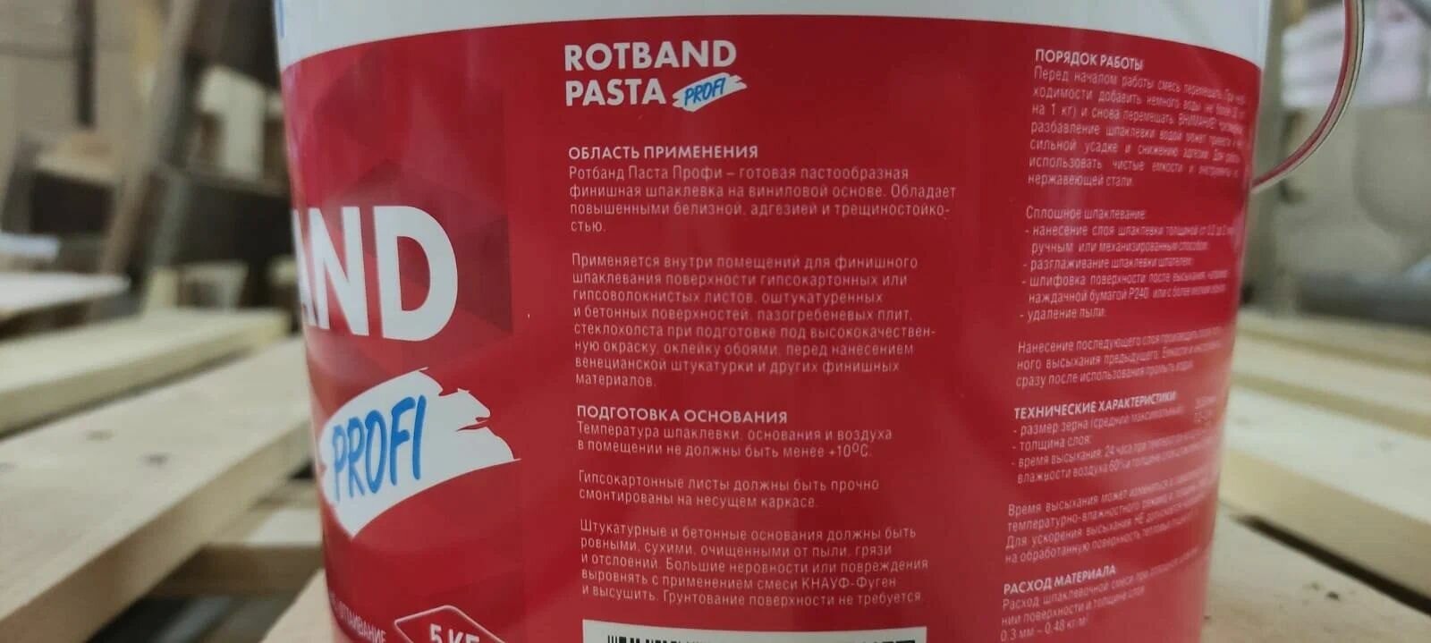 КНАУФ Ротбанд Паста Профи шпатлевка готовая (5кг) / KNAUF Rotband Pasta Profi шпаклевка финишная (5кг)