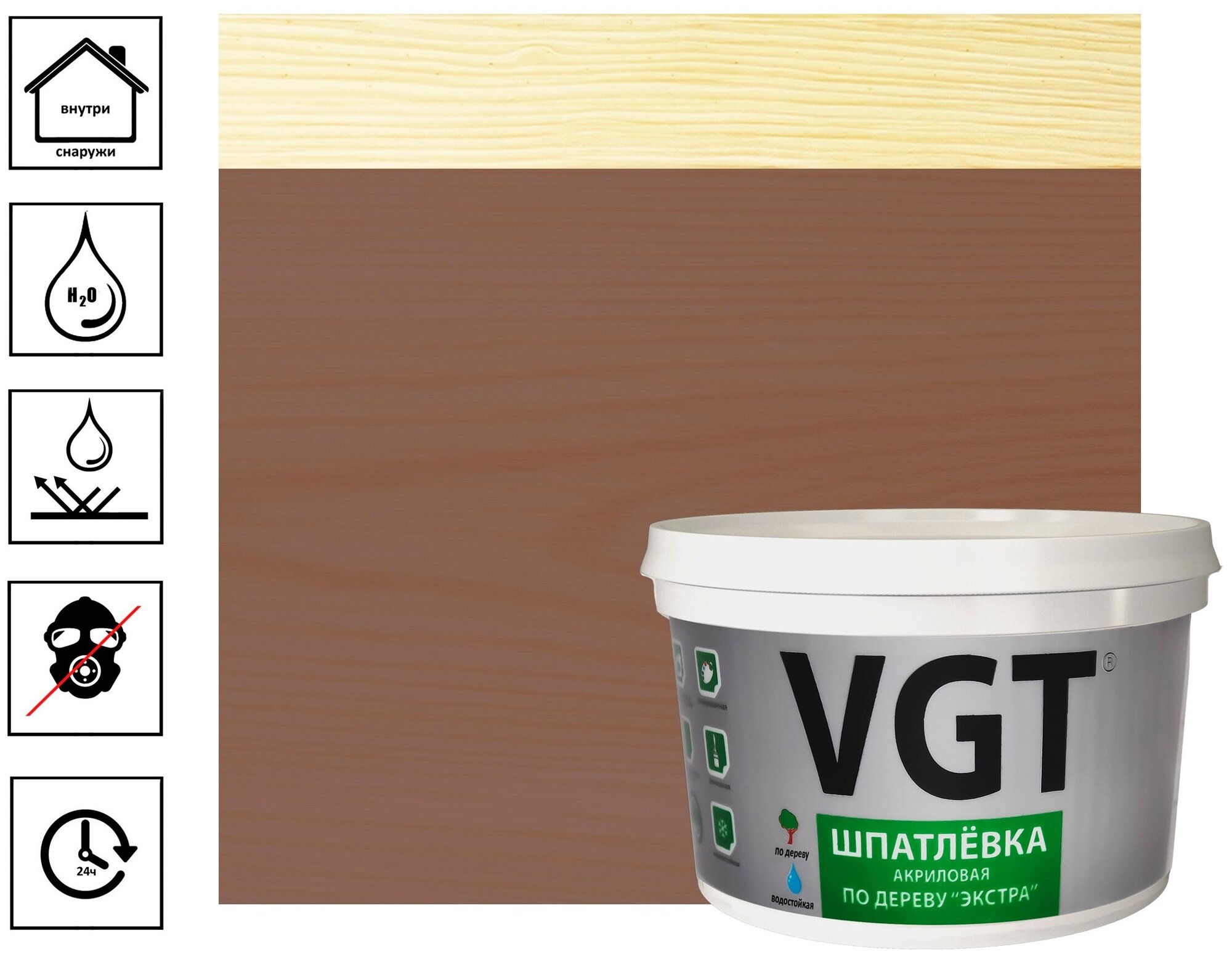 Шпатлёвка VGT экстра по дереву, акриловая, универсальная, махагон 1кг