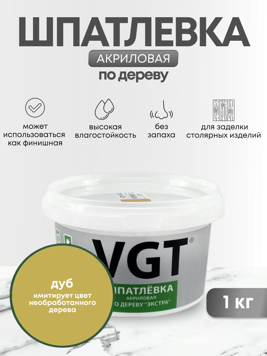 Шпатлевка по Дереву VGT Экстра 1кг Берёза Акриловая, Универсальная / ВГТ Экстра.