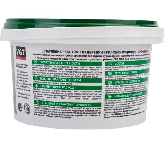 VGT ВГТ Шпатлёвка по дереву экстра белая 0,3кг