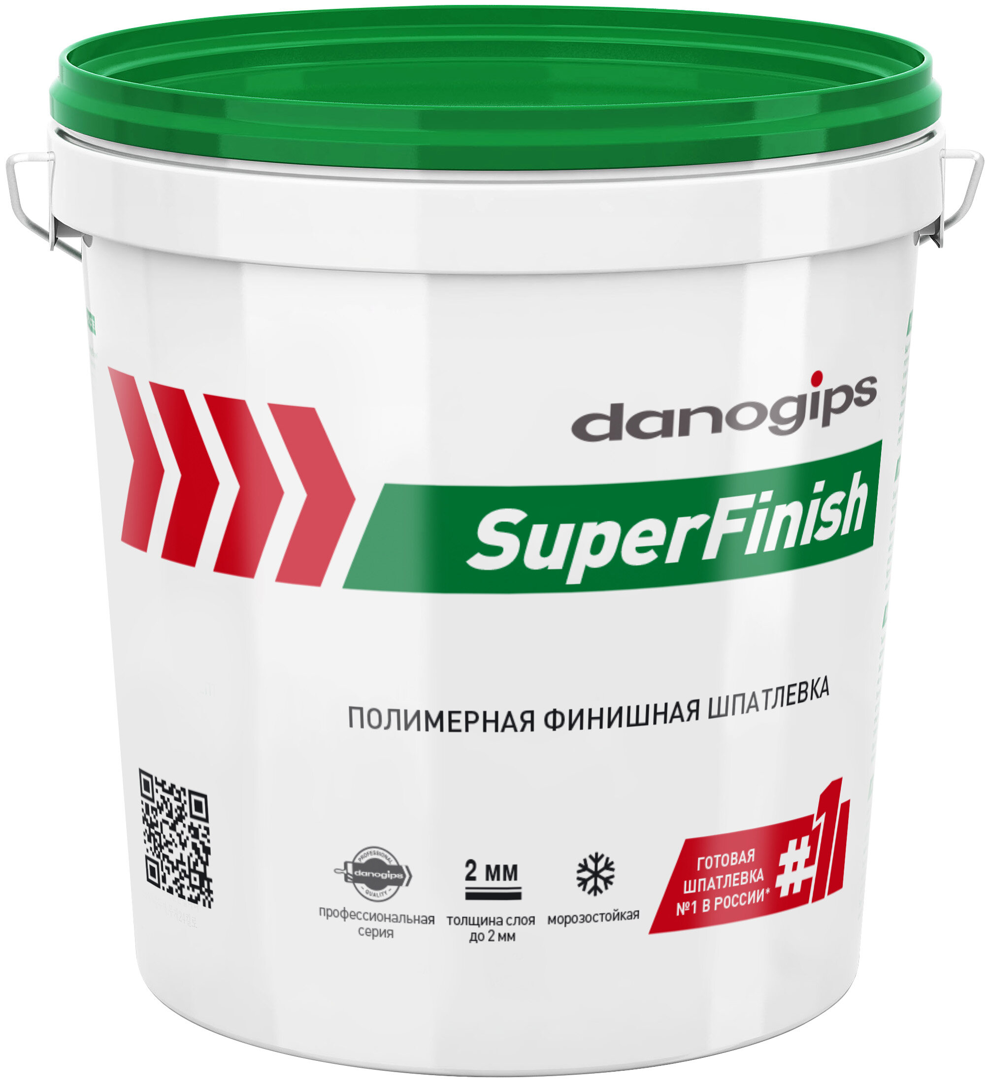 Danogips SuperFinish шпаклевка для стен, шпатлевка финишная на дсп, гкл, гипоскартон и стеклохолст, готова к применению, белая, 11 л/18 кг