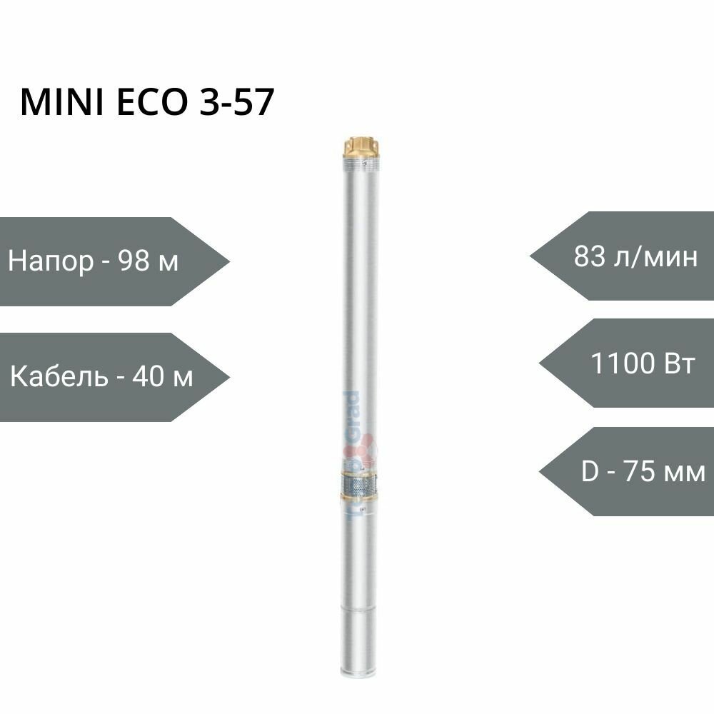 Погружной насос Unipump Mini ECO 3-57, 3", кабель 40м 81153 .