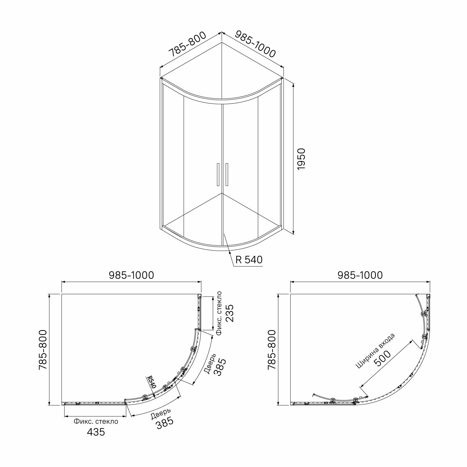 Душевое ограждение IDDIS Zodiac глянцевый алюминиевый профиль 100х80х195 см (ZOD6CR8i23)