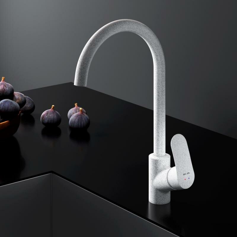 Смеситель для кухни AM.PM Like белый камень, высокий поворотный излив 270 мм, стабилизирующий картридж,латунь