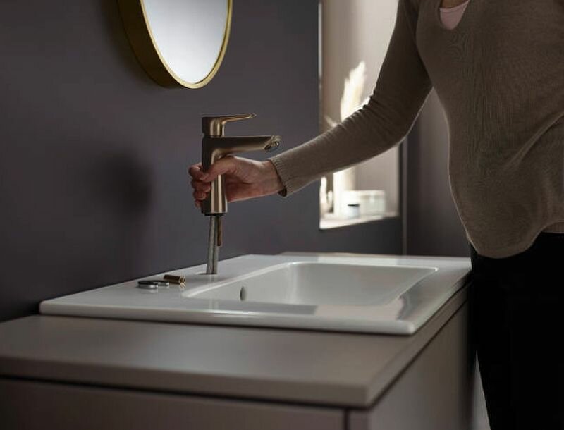 Смеситель для раковины Hansgrohe Talis E 110 с донным клапаном, шлифованная бронза 71710140