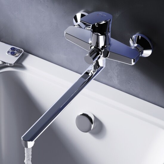 Смеситель для ванны и душа Am.Pm Gem хром, универсальный поворотный излив 320 мм, керамический картридж