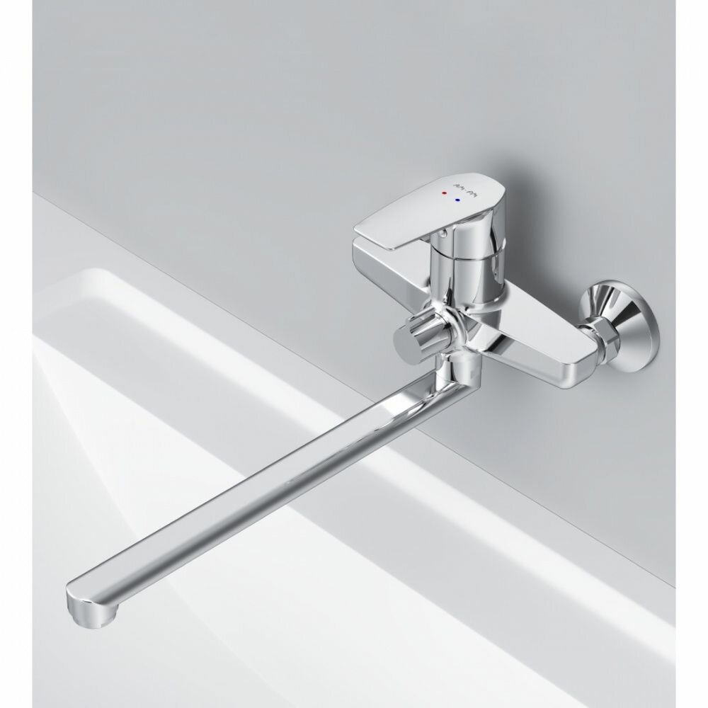 Смеситель для ванны и душа Am.Pm Gem хром, универсальный поворотный излив 320 мм, керамический картридж